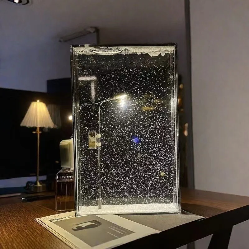 Featuring a soothing snowfall effect, this lamp becomes a portal to tranquility, whisking you away to a peaceful night where snow drifts softly. A simple glance offers a moment of serene calm.